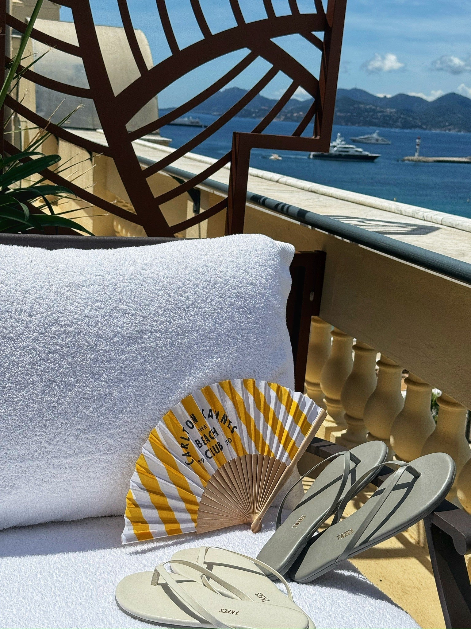 Conçue pour refléter la sérénité et le raffinement du Carlton, cette capsule incarne une élégance discrète et une sophistication naturelle. Elle est pensée pour accompagner des moments de détente, que ce soit lors d'une promenade sur la Croisette ou d'une escapade en bord de mer.